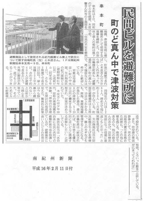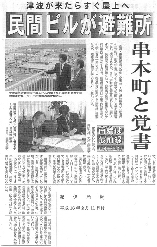 | 平成16年2月 | 串本町津波避難所と覚書締結 |